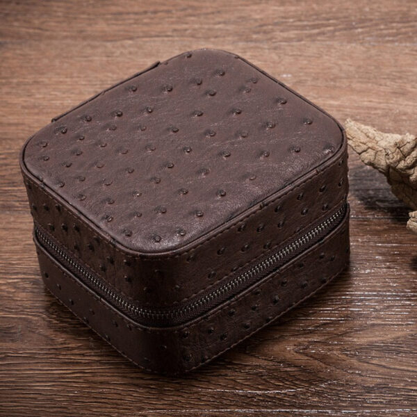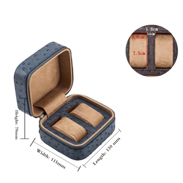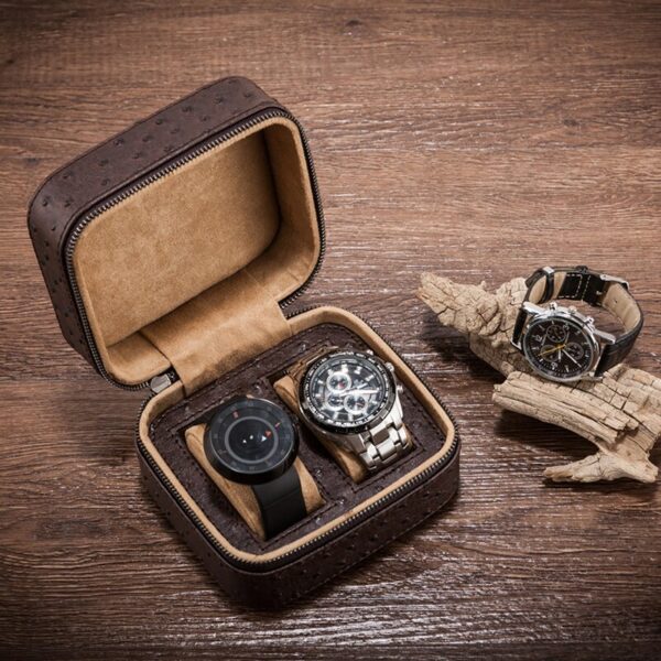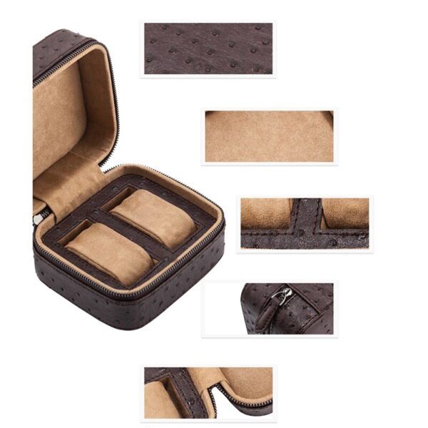 Fall in love with this elegant case for two watches. Travel with peace of mind by protecting two of your watches in this ostrich leather case with microfiber. You can also store necklaces and jewelry in it.