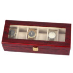 RED ROSEWOOD WATCH ORGANIZER WITH STYLISH PIANO FINISH.