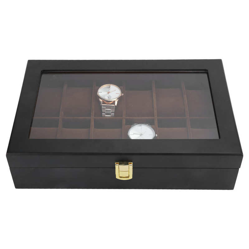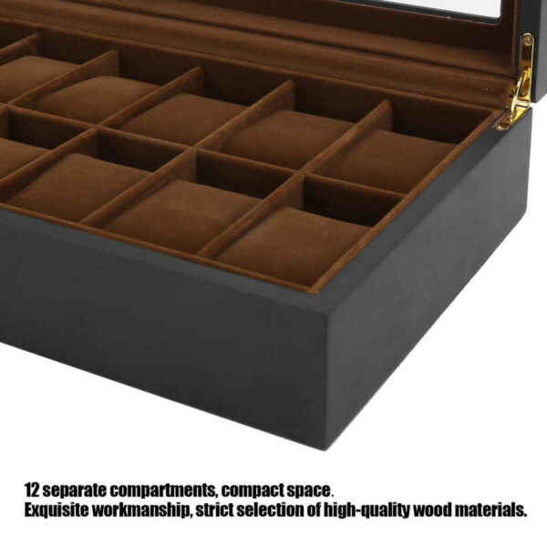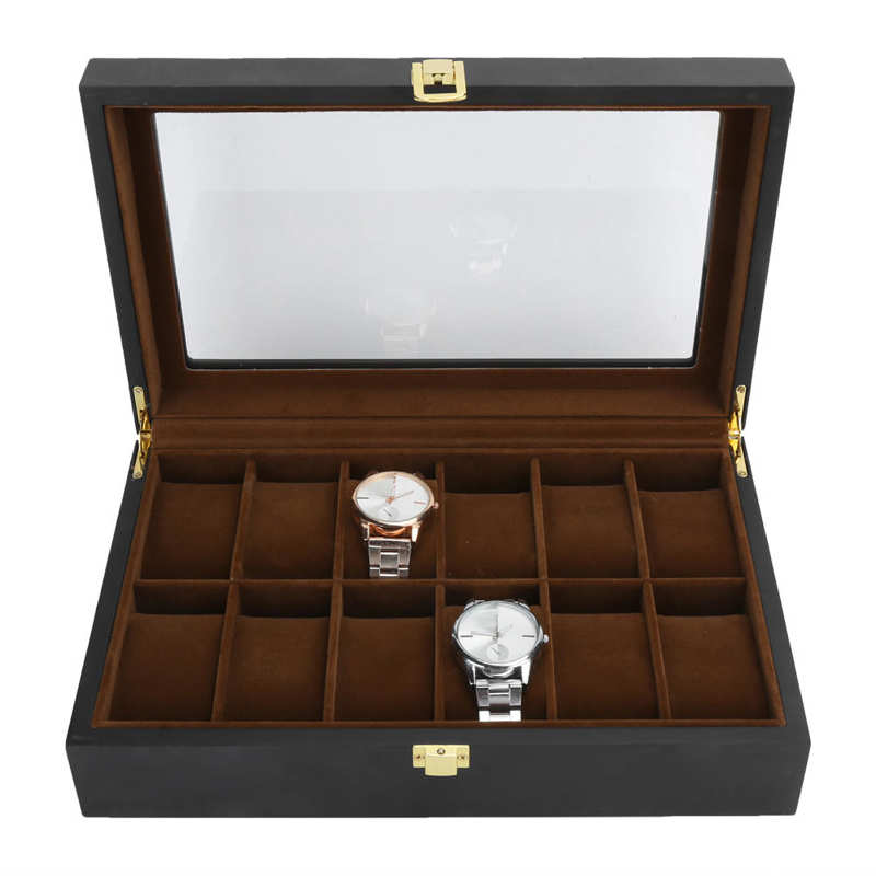 WOODEN WATCH BOX WITH SUEDE INTERIOR12 WATCHES . THE WOODEN WATCH BOX WITH SUEDE INTERIOR LINING (12 COMPARTMENTS)