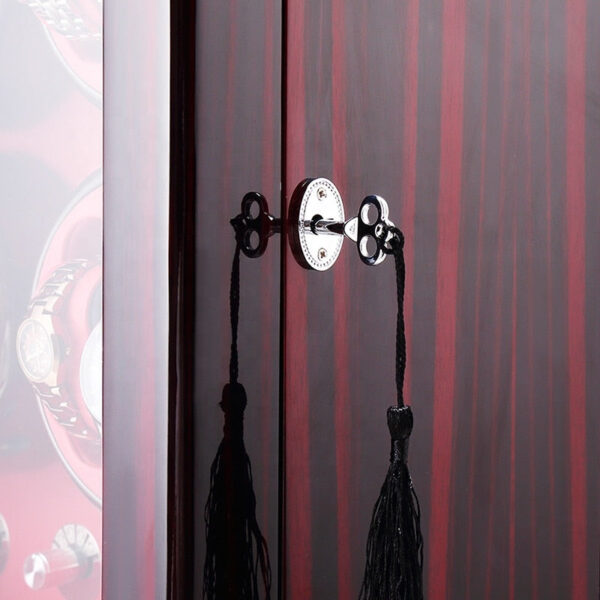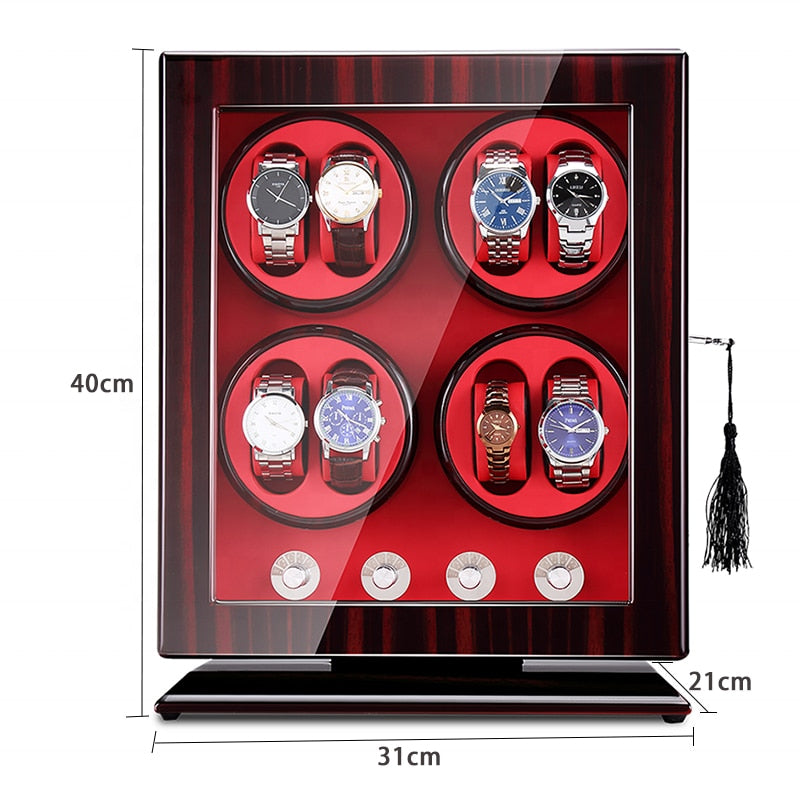 Watch lovers and collectors know: Automatic watches must be kept constantly in motion. so that they do not stop or even the watch oil inside gums up. This becomes a problem at the latest when one calls more than one of these valuable watches his own or cannot wear them for some time. Here. the watch winder provides a remedy by tirelessly vibrating automatic watches and keeping their movement in constant motion. This watch winder for automatic or mechanical watches has a finish of lacquered wood. This high quality winder will be perfect to keep your watches safe and wind them up at the same time. without you having to worry about it.