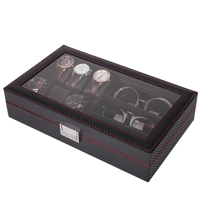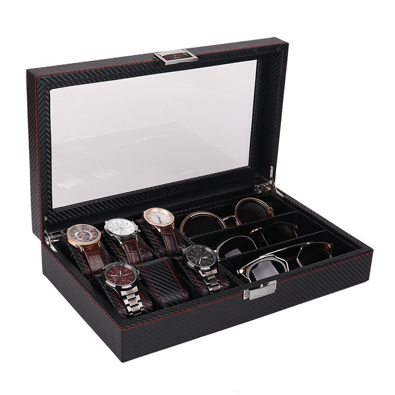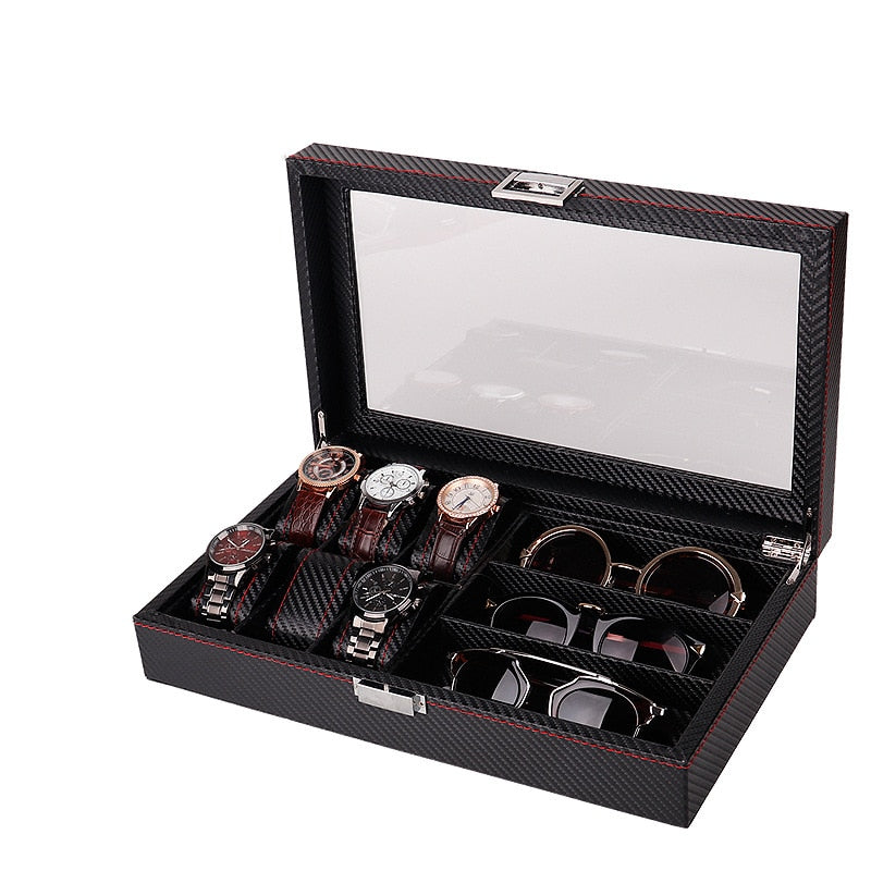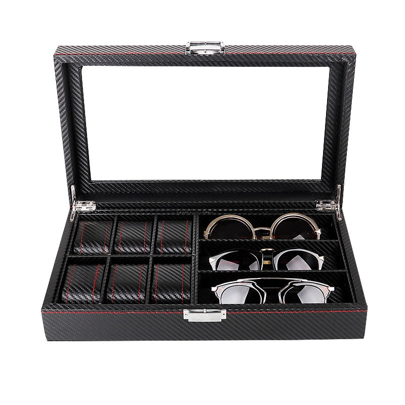 PRESENTATION OF THE CARBON FIBER WATCH BOXAND EYEGLASSES BOX BLACK ELEGANCE (6 PLACES)