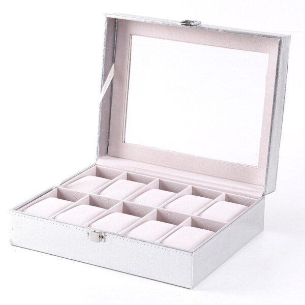 WATCH BOX FOR WOMEN WOOD 10 WATCHES – WHITE-SILVER