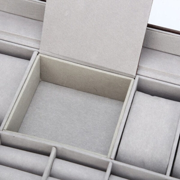 Opt for a modern style with our watch box Brown. which consists of 8 places and is ideal if you have a watch collection of about ten pieces. The contemporary leather design will show off your finest watches while making the box a unique decorative piece. The upper part of the box allows you to see your collection at a glance. The inside of the box is lined with soft felt to protect your jewelry from scratches and friction.