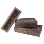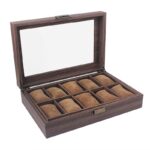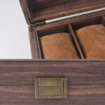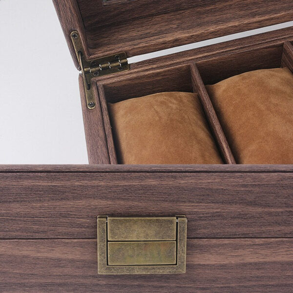 This solidwood watch boxin brown with a faux suede interior in two colors is perfect for storing your watches